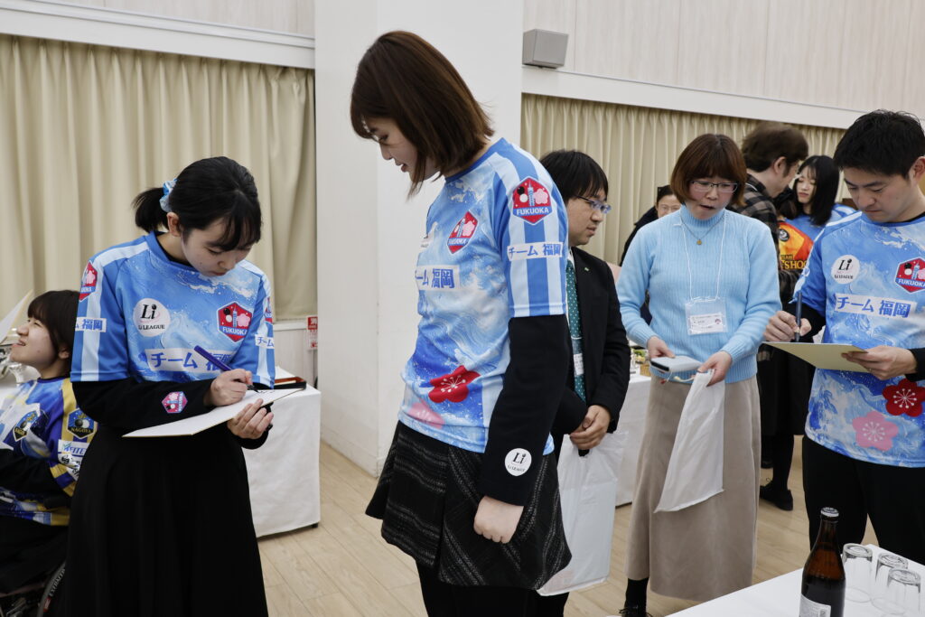写真右:サインに応じる福岡の選手たち
